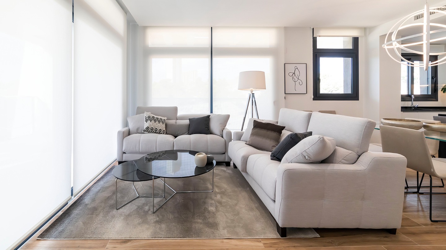 This new Penthouse apartment is located on the 30th floor with over 170m2 of terraces. The development has a unique design with a touch of sophistication that modernises the skyline of the Poniente beach of Benidorm. The properties are built on over 20,000m2 that includes communal and recreational areas totalling more than 10,000m2 and accommodating extensive, well-tended gardens, 3 swimming pools, 3 Jacuzzis, a chill-out lounge area with 2 bars, one wet and one dry, and sunbathing areas by the pools totalling over 2000m2 with natural grass among other features. The extensive line-up at this residential complex also includes a large sports area to make even the most demanding of athletes happy, equipped with a heated swimming pool, a tennis court, a paddle court, multi-sports court, petanque courts and a 150m2 panoramic gym. The children’s playground, the climbing wall and the pool are all within the security perimeter. The large sandy beaches are just 150 metres walk and with bars, restaurants and supermarkets all close by.