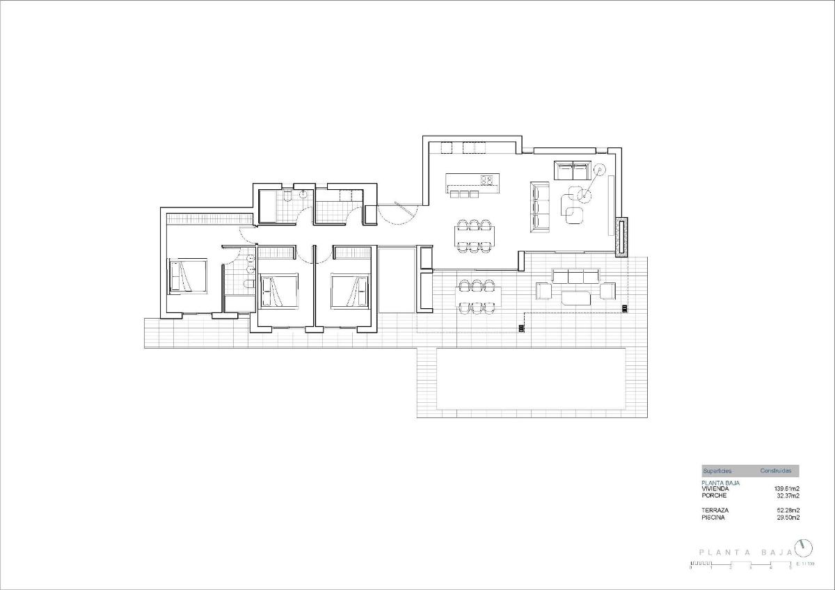 NIEUWBOUW VILLA IN CALPE Nieuwbouwvilla gelegen in een van de woonwijken die de voorkeur genieten van alle inwoners van Calpe, vanwege de nabijheid van het stadscentrum, de stranden en tegelijkertijd omdat het een rustige maar veilige buurt is, omdat het aan de rand van het stadscentrum ligt. De woning is gepland op een enkele verdieping, wat dit project praktisch en comfortabel maakt. Het hele perceel is omheind en heeft binnen een haag van cipressen, wat zorgt voor privacy en een aangename omgeving. Vanuit de hoofdingang van het huis hebben we toegang tot een hal, van waaruit we aan de linkerkant toegang hebben tot het daggedeelte, bestaande uit een woonkamer met eetkamer en open keuken met eiland. Vanuit de woonkamer hebben we toegang tot de buitenkant, waar we een overdekte veranda hebben met barbecue en een groot terras met zwembad van 40m2. Aan de rechterkant van het huis is het slaapgedeelte, met 4 slaapkamers: de master suite met kleedkamer en badkamer, een andere slaapkamer met en-suite badkamer en nog twee slaapkamers die een badkamer delen. Er is ook een wasruimte. Buiten is er een parkeerplaats met een pergola in de vorm van een zeil voor twee auto’s. Calpe, een van de steden van La Marina Alta, ligt aan de noordkust van de provincie Alicante, omringd door de steden Altea, Benidorm, Teulada-Moraira, Benissa. Calpe heeft een prachtige mix van oude Valenciaanse cultuur en moderne toeristische faciliteiten. Het is een prima uitvalsbasis om de omgeving te verkennen of te genieten van de vele plaatselijke stranden. Calpe alleen al heeft drie van de mooiste zandstranden aan de kust. Calpe heeft ook twee zeilclubs: Real Club Náutico de Calpe en Club Náutico de Puerto Blanco. Vissersdorp Calpe is nu omgetoverd tot een toeristische trekpleister, de stad ligt op een ideale locatie, gemakkelijk bereikbaar via de snelweg A7 en de N332 die van Valencia naar Alicante loopt; het is ongeveer 1 uur rijden van het vliegveld van Alicante en 1,5 uur van het vliegveld van Valencia.