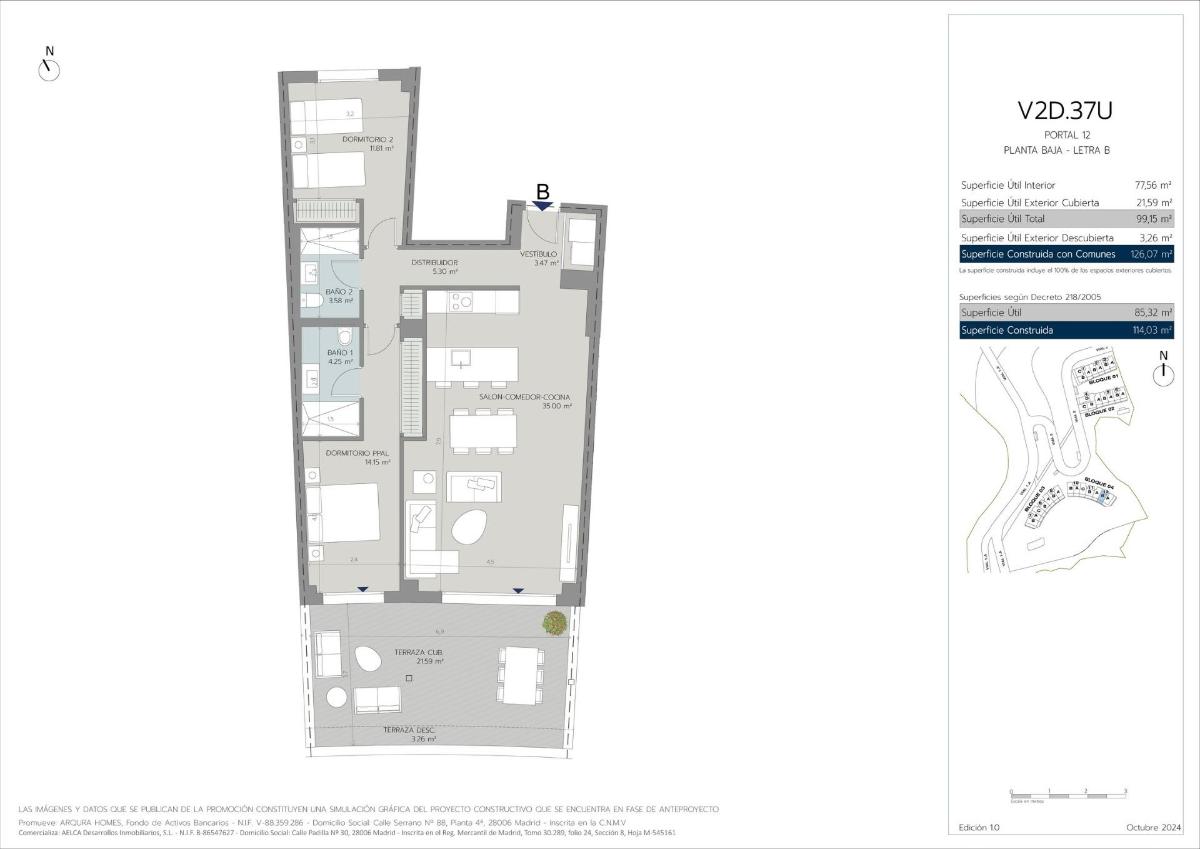 Nieuwbouwappartementen met uitzicht op zee in Torremuelle Benalmádena Exclusief mediterraan wonen aan zee Ontdek een uniek nieuwbouwproject in Torremuelle, Benalmádena, dat is ontworpen om het leven aan de kust van de Costa del Sol opnieuw te definiëren. Op slechts 300 meter van de zee biedt dit woonproject 74 moderne woningen met 2 en 3 slaapkamers, allemaal inclusief privégarage en berging. Met hun eigentijdse architectuur, open en lichte interieurs en adembenemend uitzicht op zee zijn deze woningen de perfecte combinatie van comfort, exclusiviteit en mediterrane levensstijl. Modern design en hoogwaardige afwerking Elk detail is zorgvuldig gepland om functionaliteit en elegantie te bieden. De appartementen zijn voorzien van: Volledig ingerichte en uitgeruste keukens met apparatuur Aerothermisch warmwatersysteem Airconditioning met warmtepomp Vloerverwarming in badkamers Badkamers met spiegels, doucheschermen en meubilair in de hoofdbadkamers. Versterkte toegangsdeur Uitzonderlijke gemeenschappelijke ruimtes Dit omheinde wooncomplex verhoogt uw levenskwaliteit met exclusieve voorzieningen: Infinity-zwembaden met zoutchlorering en nachtverlichting Aangelegde tuinen met ontspanningsruimtes Buitenfitnessruimte en barbecueplaats Fietsenstalling met oplaadpunt Gemeenschappelijke bar en recreatieruimtes Toplocatie in Torremuelle Benalmádena Torremuelle is een gewilde kuststreek die bekend staat om zijn prachtige stranden, natuurlijke schoonheid en uitstekende voorzieningen. Het project ligt op een verhoogde locatie met panoramisch uitzicht op de Middellandse Zee, terwijl het dicht bij dagelijkse voorzieningen zoals supermarkten, apotheken, scholen en restaurants ligt. Afstanden tot belangrijke bezienswaardigheden: Torrequebrada Golf – 1,5 km Benalmádena Puerto Marina – 4,5 km Tivoli World and Selwo Marina – 5 km Fuengirola – 10 minuten Centrum van Benalmádena – 10 minuten Luchthaven Málaga – 18 km (20 minuten) Centrum van Málaga – 26 km De perfecte mix van rust en bereikbaarheid Het project profiteert van uitstekende vervoersverbindingen, met de snelweg N-340 op slechts 2 minuten afstand en het RENFE-treinstation Torremuelle op 3 minuten, waardoor u snel en gemakkelijk naar Málaga, Fuengirola en de rest van de Costa del Sol kunt reizen. Verzeker u vandaag nog van uw mediterrane woning Of u nu op zoek bent naar een permanente woning, een vakantiehuis of een rendabele investering, deze nieuwe ontwikkeling in Torremuelle Benalmádena biedt alles wat u nodig heeft om te genieten van het beste van de mediterrane levensstijl. Neem vandaag nog contact met ons op om een bezoek te regelen en uw droomhuis aan zee te reserveren.